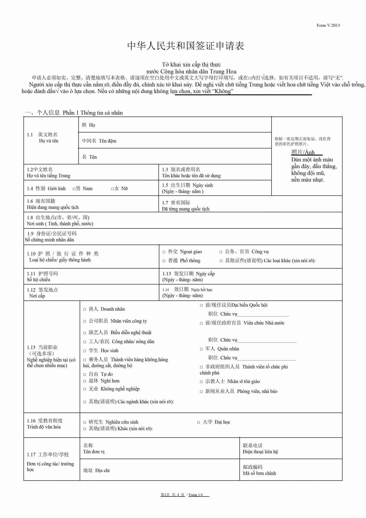 • Đến nộp tại Đại sứ quán Trung Quốc ở Hà Nội hoặc Tổng lãnh sự quán tại TP.HCM.