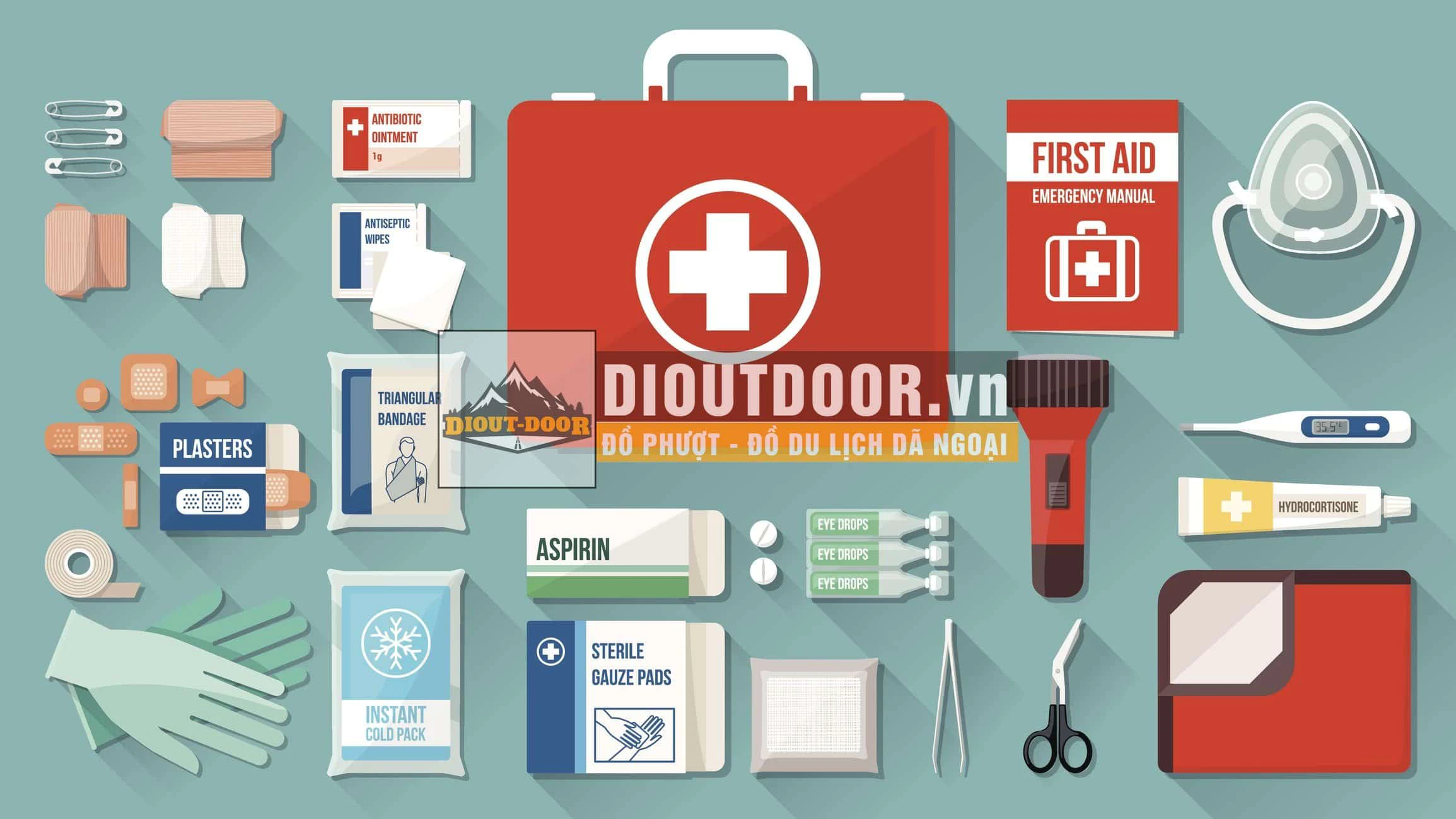 Nhiệt kế điện tử, băng gạc, dầu gió.